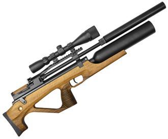 В комплекте с винтовкой: саундмодератор, магазин, лоток для однозарядной стрельбы, штуцер для заправки сжатым воздухом, ЗИП с резиновыми кольцами.